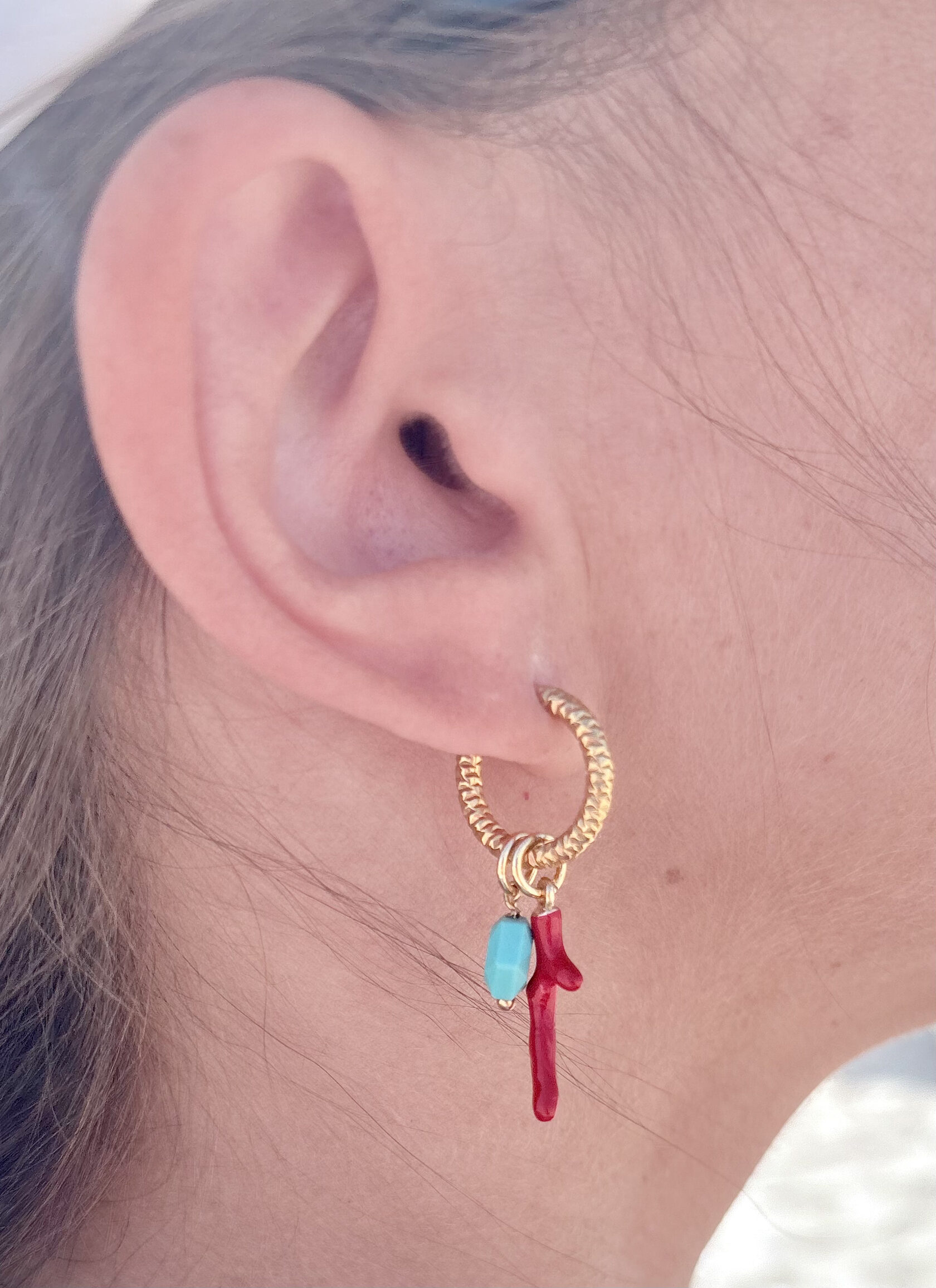 позолоченная сталь, натуральные камни, устойчивы к воде. Подвески - 2 шт
