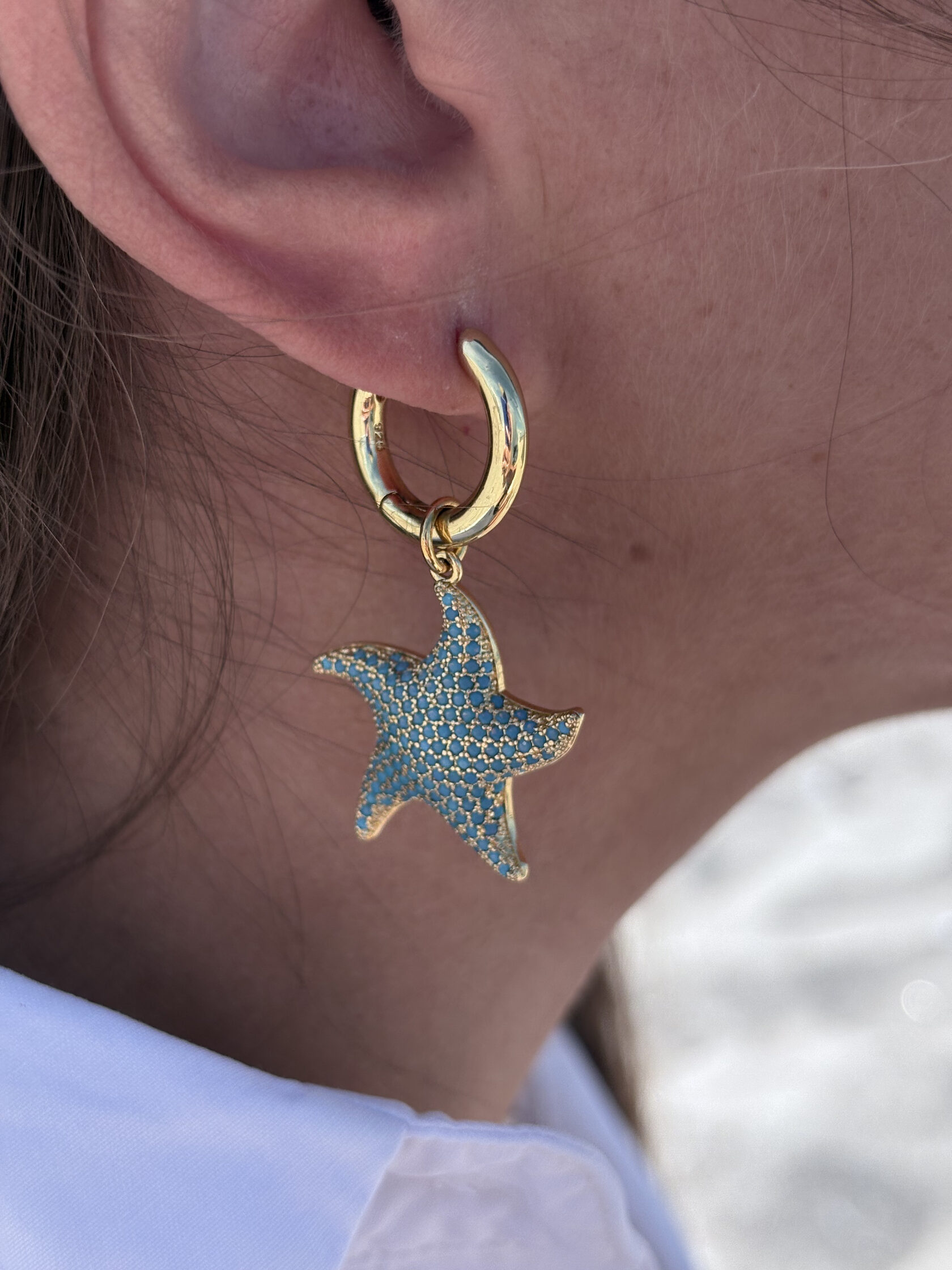 серьги-кольца,съемная подвеска подвеска звезда, камни - фианиты 1 шт.