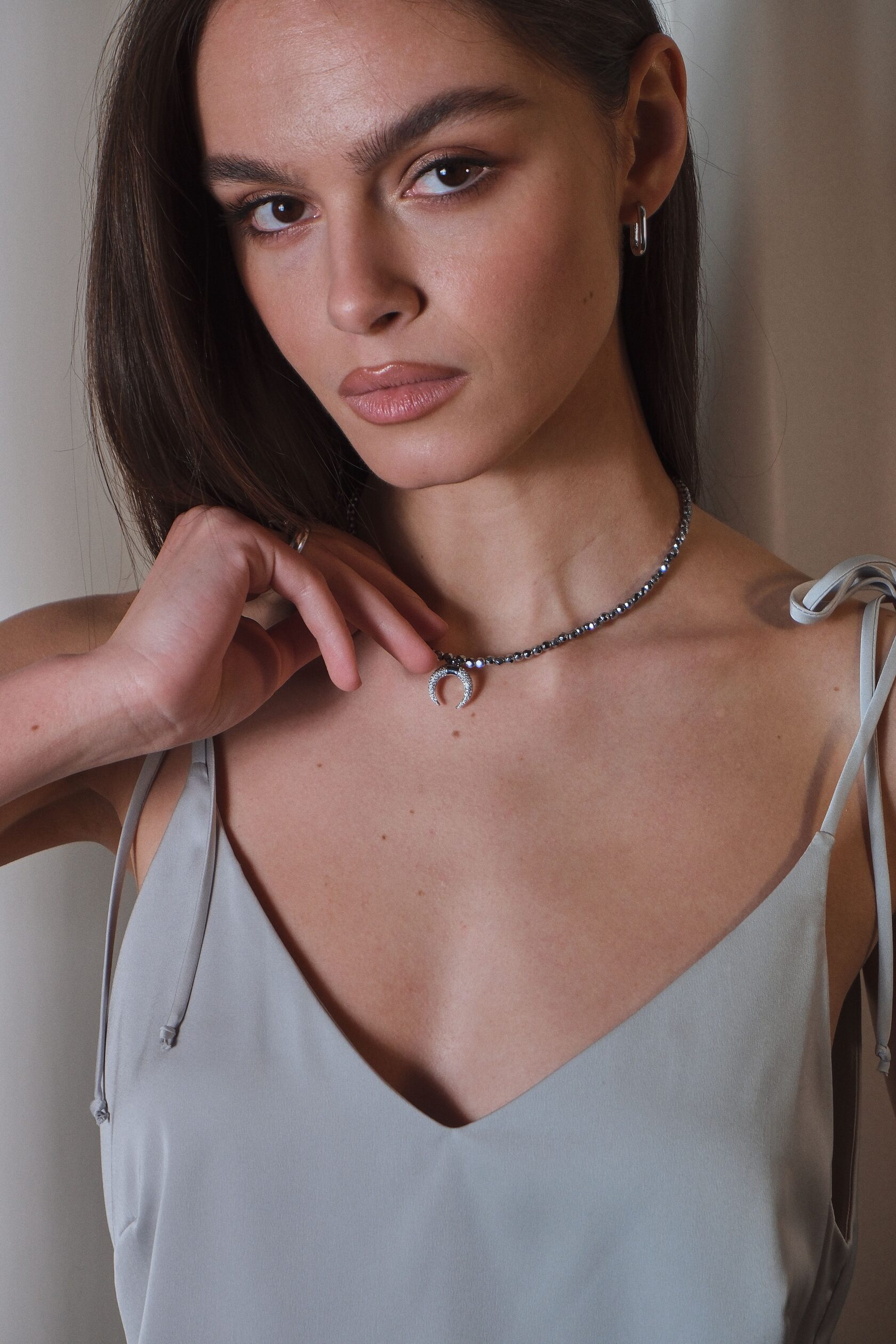 гематин, сталь с родированным покрытием, натуральный жемчуг