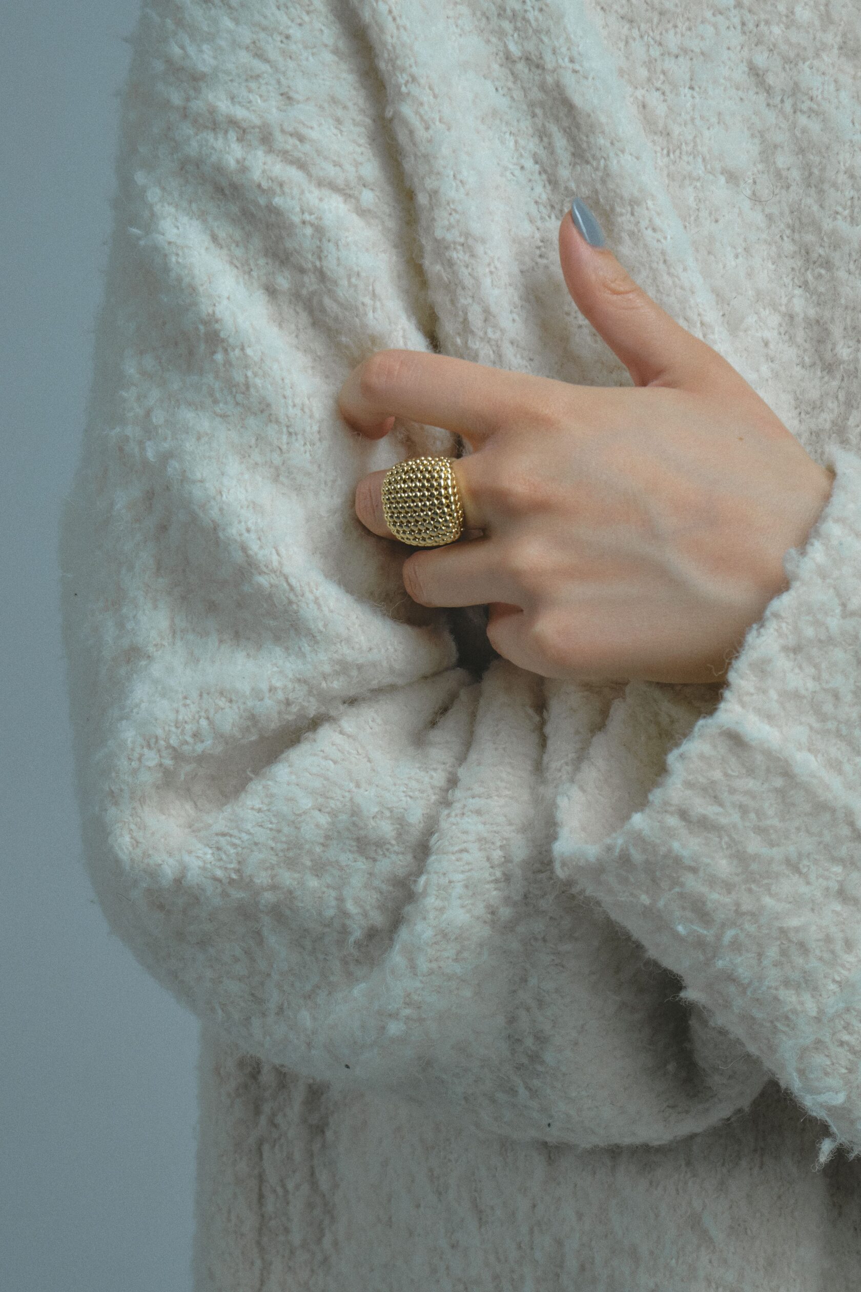 перстень медицинской стали с позолотой и искусственным жемчугом