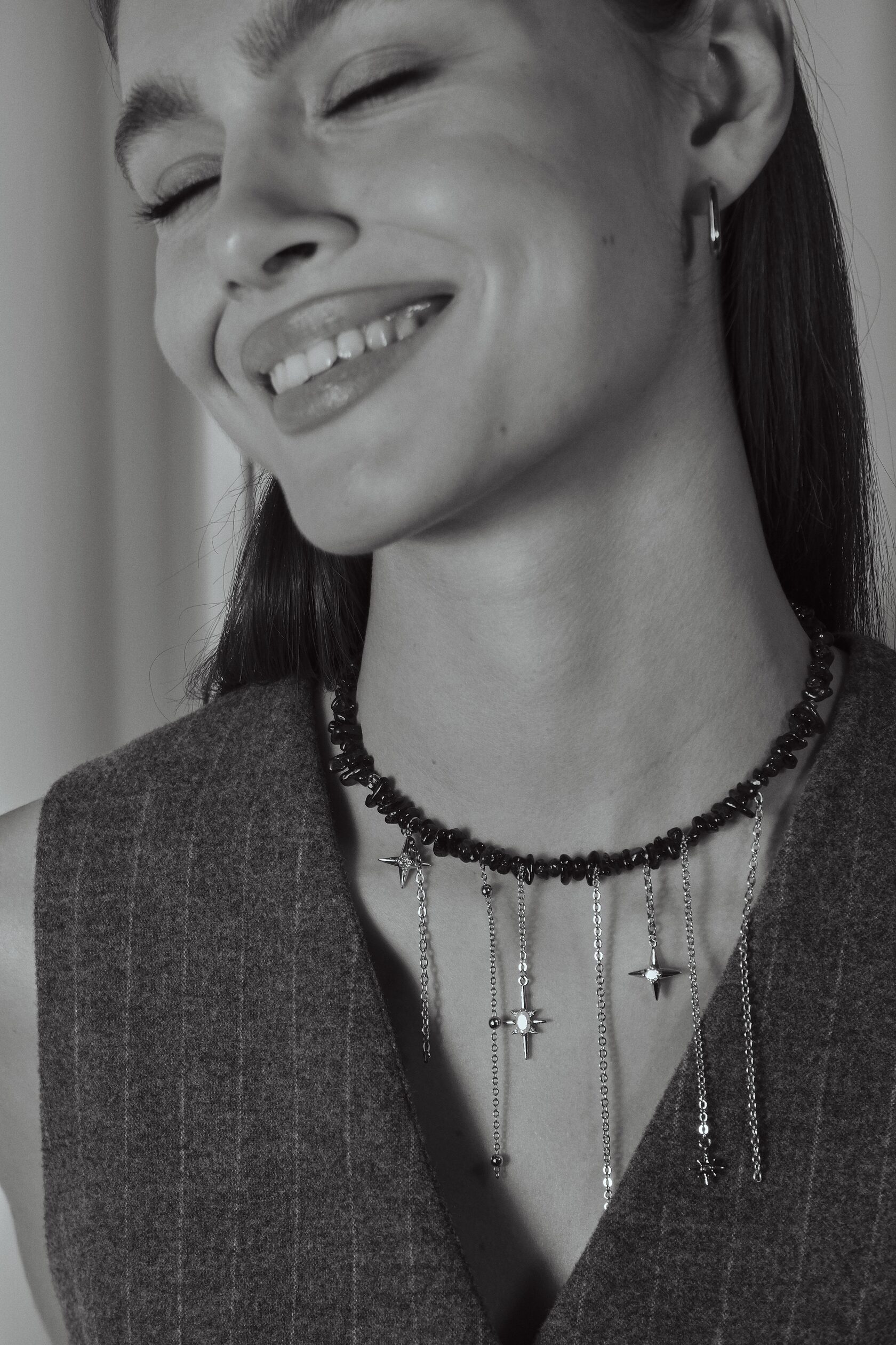 натуральная яшма, акцент из красного хлопкового жемчуга